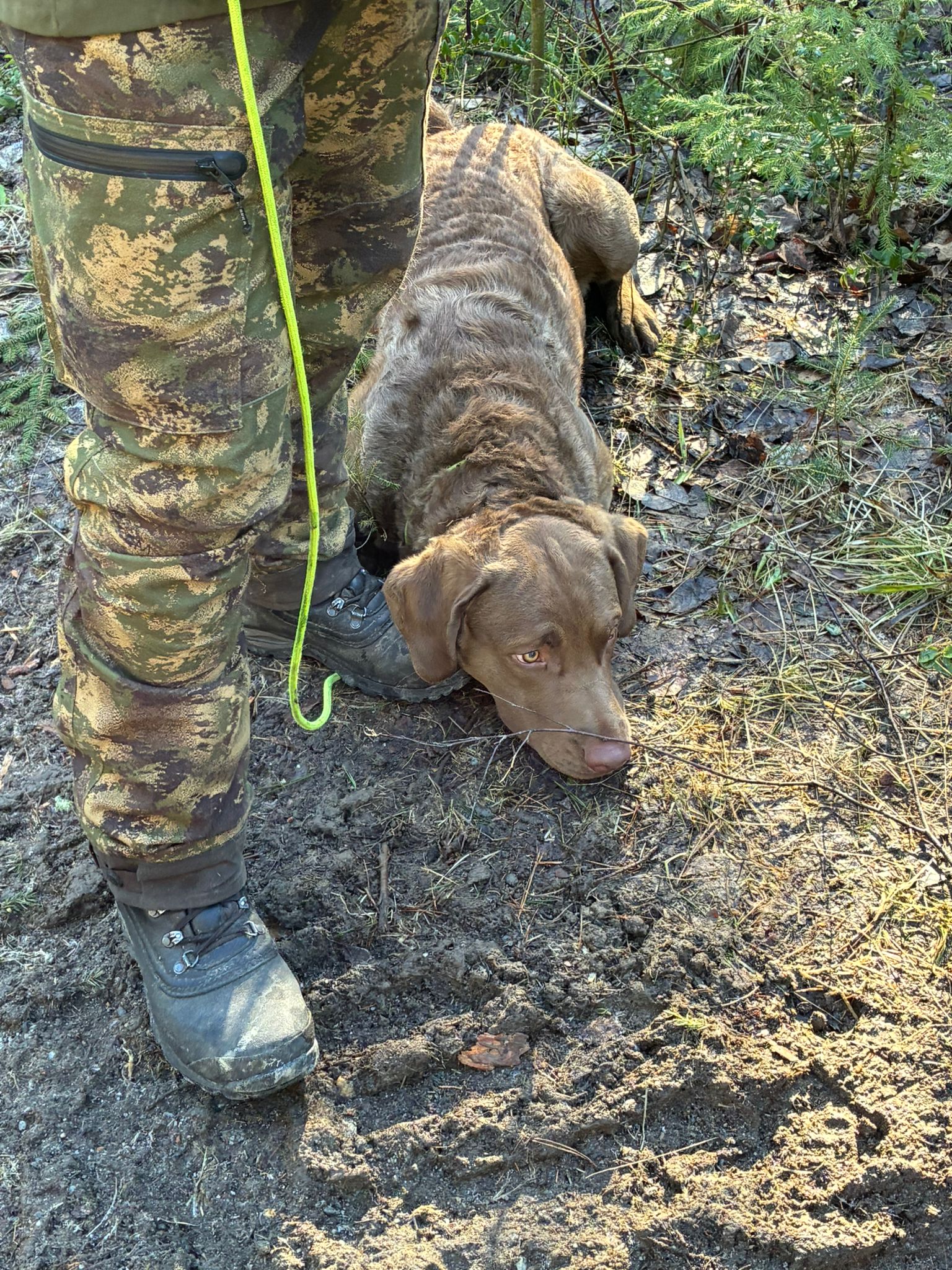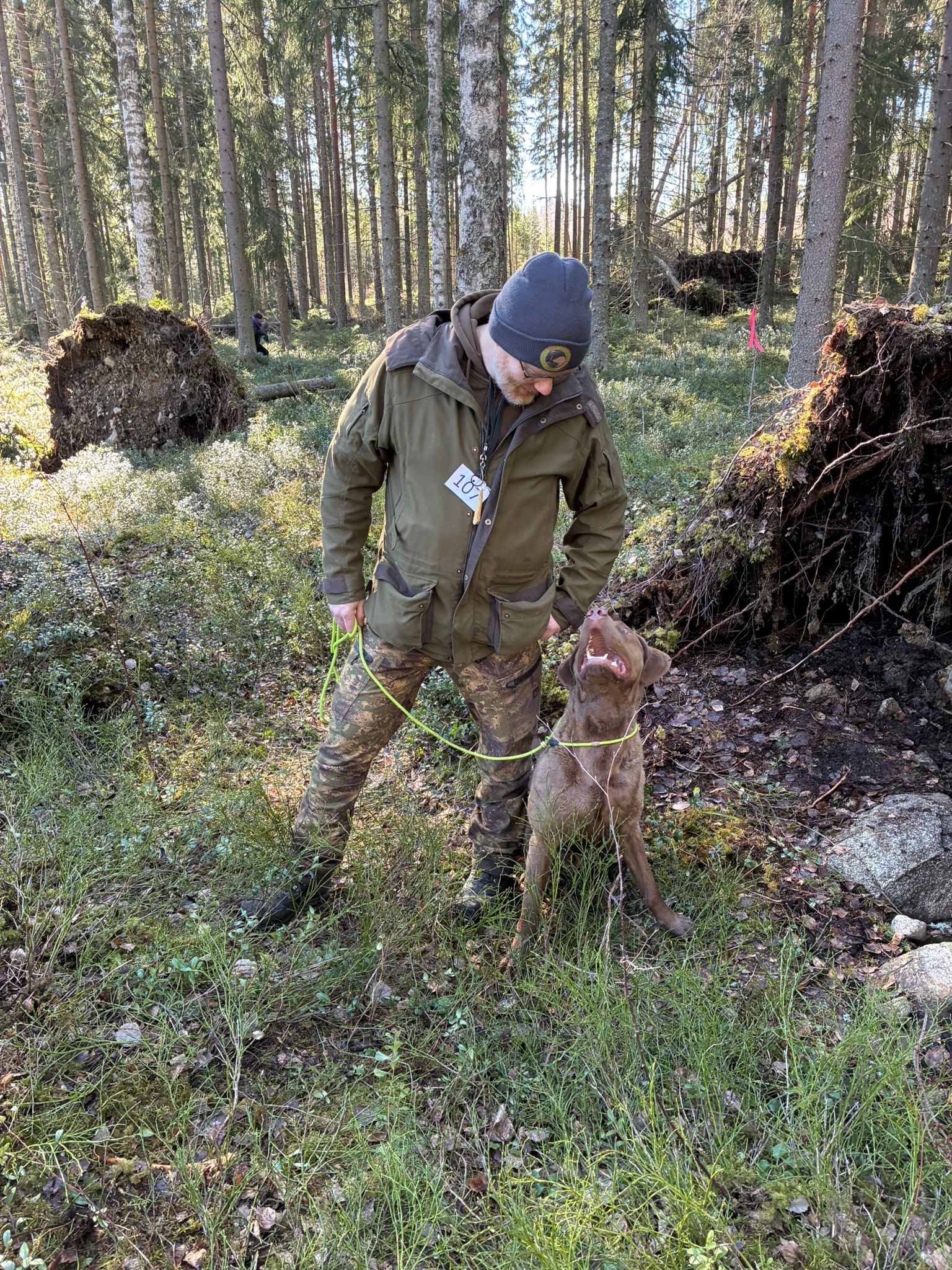 We had a really fun day yesterday. Nyyri and Pete participated in the unofficial hunting test competition. Nyyri did well for his age and was judges choise: ”A barrel of gun powder that doesn’t lack speed or strenght. Keeping it together well thought. Pleasantly controlled.”